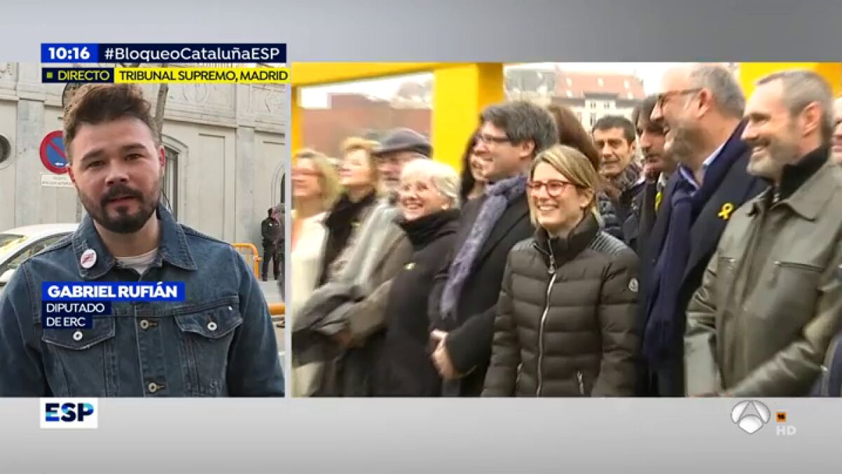 Sobre el contraataque del Tribunal Supremo rechazando la decisión de la justicia alemana, Rufián dice que "hay catedráticos que ya están alzando al voz contra la judicialización de este proceso político y no son independentistas, son gente que no entiende lo que está pasando".