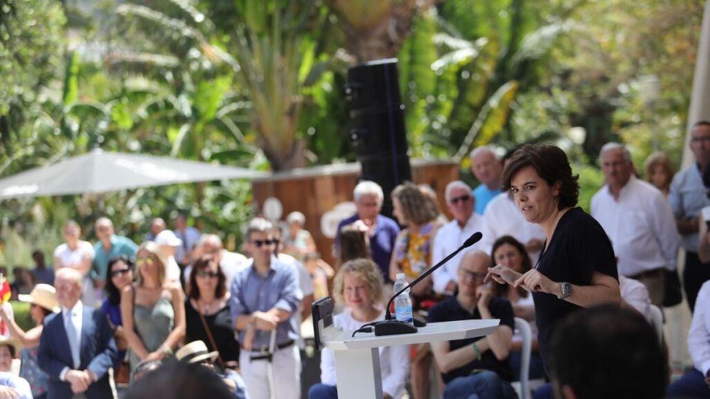 Sáenz de Santamaría ha elegido Málaga para abrir este sábado la campaña interna para presidir el partido con un primer mitin para los afiliados en el auditorio Eduardo Ocón, un recinto al aire libre en pleno centro de la ciudad, donde han asistido unas 500 personas, según la organización.