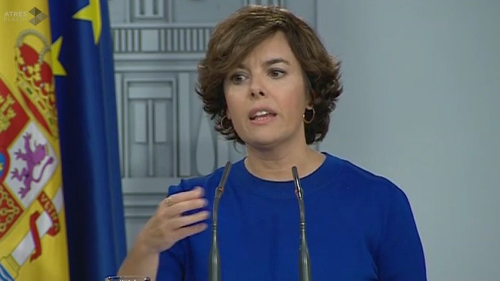 En su rueda de prensa, la vicepresidenta ha asegurado que ha sido una mañana "intensa" porque "lo que hemos vivido hoy en Cataluña es una patada a la democracia y a la decencia política".