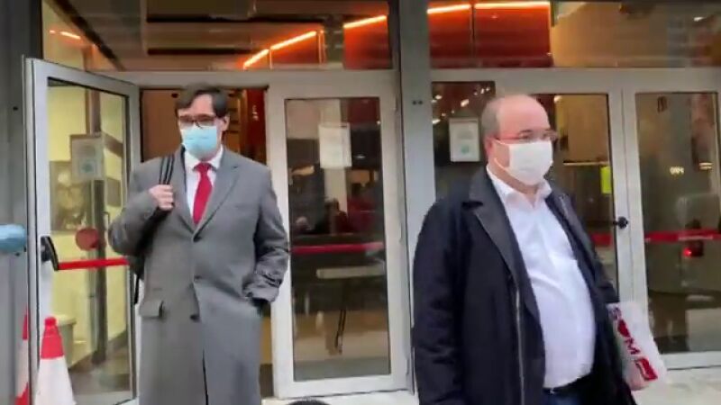 Primeras declaraciones del ministro de Sanidad, Salvador Illa, ante las cámaras de Antena 3 Noticias, al dirigirse a la reunión del partido que debe ratificarlo como candidato a la Presidencia de la Generalitat.