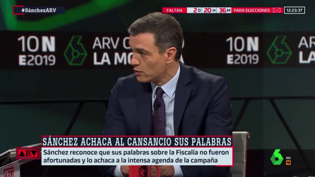 En una entrevista en el programa 'Al Rojo Vivo' de La Sexta, Sánchez ha reconocido que no fue "preciso" ayer en sus palabras, pero ha insistido en que en todos los meses que lleva en el Gobierno ha demostrado su respeto a la autonomía del Ministerio Fiscal y del Poder Judicial.