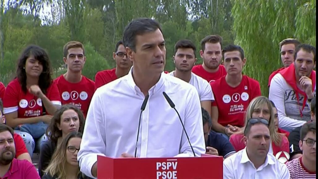 El secretario general del PSOE, Pedro Sánchez, ha afirmado este sábado en Valencia que "si hay una quiebra unilateral" del Estado social de Derecho, el Partido Socialista "sabe dónde va a estar, que es al lado de la integridad territorial de nuestro país y de la Constitución española".