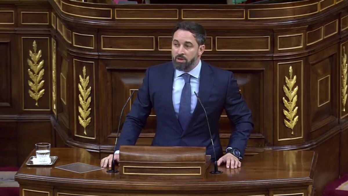 El líder de Vox, Santiago Abascal, ha intervenido en la moción de censura de Vox contra Pedro Sánchez después de que lo hiciera cuatro diputadas de Unidas Podemos que han indicado que España avanza hacia una "república feminista".