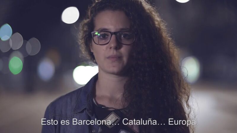 El vídeo comienza como el de Òmnium, con una joven explicando que está en "Barcelona, Cataluña, Europa" y subraya que no ha dicho en ningún momento la palabra "España" porque "nosotros, los nacionalistas catalanes somos mortalmente alérgicos a esa palabra", dice con ironía.