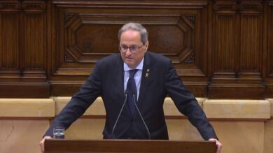 El presidente de la Generalitat repitió este jueves por la noche en TV3 su intención de volver a llamar a los catalanes a un referéndum ilegal como el del 1 de octubre. Reiteró el anuncio hecho por la mañana durante el pleno del parlamento catalán y que sorprendió a sus socios de gobierno. Quedó claro que no era una declaración pactada cuando tomó la palabra el presidente del grupo de ERC, Sergi Sabrià, que se limitó a decir que Esquerra valoraría la propuesta aunque consideraba que "no es el momento de poner fechas” “sino de trabajar para acumular fuerzas” y recordó a su socio que “es a través de los grandes consensos que el independentismo se ha hecho grande”.