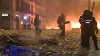 En la quinta noche de protestas en la ciudad condal, Barcelona, se ha convertido en una batalla campal de todo tipo de objetos. El suelo de las calles principales se encuentran llenos de piedras, sillas, vallas y papeles. Muchas de las zonas ya se encuentran con las barricadas apagadas tras el trabajo realizado por los bomberos y las tanquetas de agua.