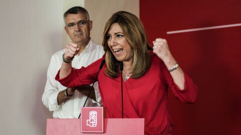 "Os pido que nos levantemos y saquemos orgullo para que a partir del lunes levantemos el PSOE para levantar España", ha reiterado la presidenta de Andalucía ante el centenar de militantes que llenaban la sede de la Agrupación Local del PSOE de Trujillo (Cáceres).