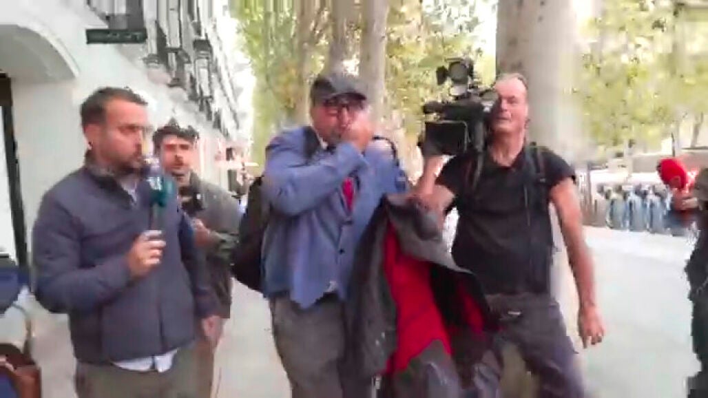 "Que no me empuje", le decía el exasesor al reportero, y justo unos segundos después una cámara impactaba levemente, sin intención de agredir, contra su rostro. Koldo se toca la zona del impacto, mira su mano y después a la persona que porta la cámara. Permanece callado mordiéndose la lengua para posteriormente declarar: "He atendido siempre a los medios de comunicación, lo único que pido es que no me agredáis".