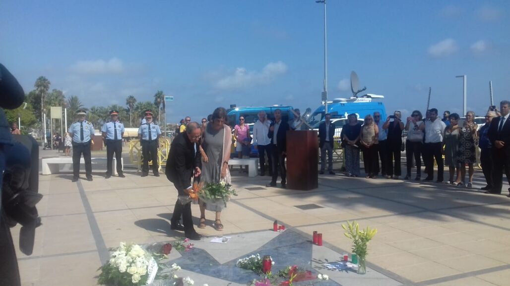 Torra ha llevado a cabo una ofrenda floral junto a su mujer en el Memorial por la Paz de Cambrils, en el paseo Miramar, donde ocurrieron los hechos