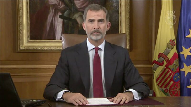 Felipe VI se dirigió a la nación para advertir de que, ante la situación "de extrema gravedad" en Cataluña, los "legítimos poderes del Estado" deben asegurar "el orden constitucional", la vigencia del Estado de derecho y el autogobierno de Cataluña, basado en la Constitución y en su Estatuto de Autonomía".