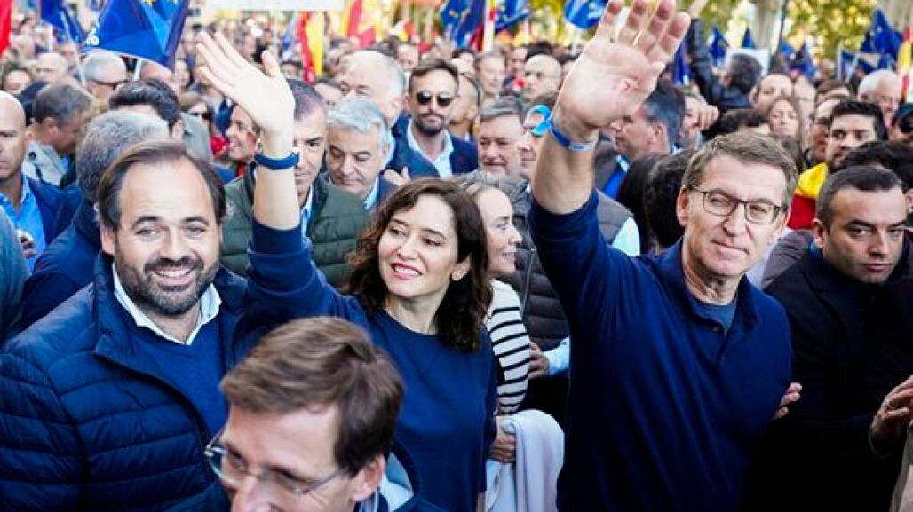 Ha asegurado Feijóo que "lamentablemente estamos en un momento muy complicado para nuestra democracia" y ha defendido que en estas protestas en la calle avisan al Gobierno de que "una cosa es tener el poder y otra es tener la razón, una cosa es haber conseguido los diputados suficientes, pero saben que no tienen los votos". Feijóo ha pedido que no se "levanten muros, no tensionen la sociedad. Volvamos al sentido común, volvamos a la Constitución".