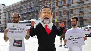 Oxfam Intermón ha llevado este martes 30 de mayo hasta el kilómetro 0 de la Puerta del Sol de Madrid un 'cabezudo' del presidente del Gobierno, Mariano Rajoy, al que sacará de viaje por distintos puntos de España para advertir de que faltan 120 días para que venza el plazo en el que el Gobierno se comprometió a acoger a 17.337 refugiados.