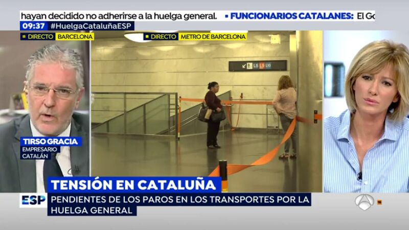 Tirso Gracia, empresario catalán, ha pedido tanto a los políticos nacionales como de Cataluña y a los periodistas que bajen el tono en la discusión sobre Cataluña. Durante una entrevista en Espejo Público, el empresario también ha criticado las imágenes que se vieron el pasado domingo porque provocaron "una ruptura mayor entre las fuerzas de seguridad del Estado y la gente", aunque también ha responsabilizado a los Mossos.