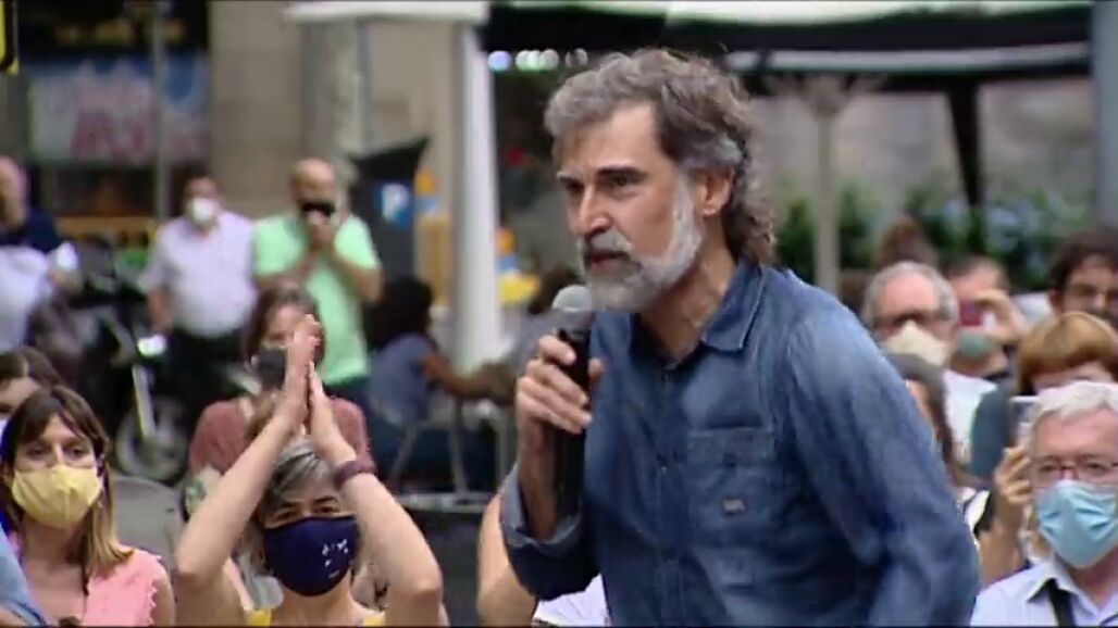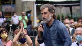 Suspendidos los recibimientos a los presos del 'procés' que ya disfrutan del tercer grado. Jordi Cuixart y seguidores de su organización, Òmnium, gritan que no darán "ni un paso atrás".