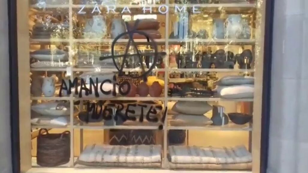 Un grupo de radicales ha destrozado el escaparate de una tienda de Zara durante la madrugada del miércoles en Girona. En el establecimiento puede leerse "Amancio, muérete".