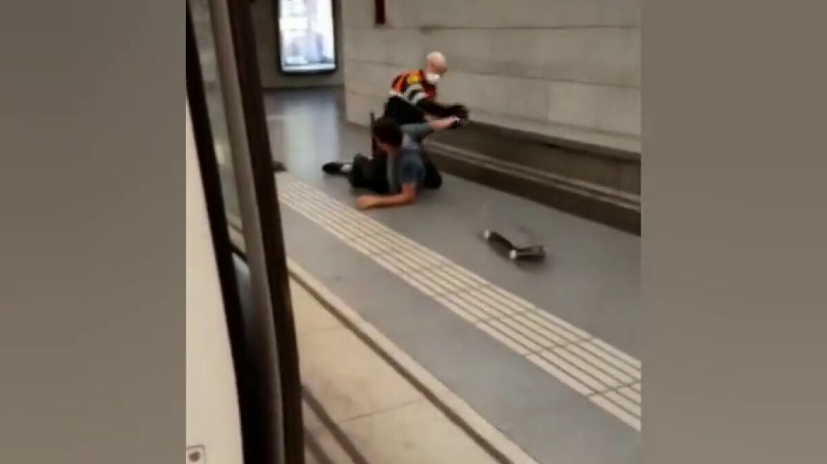 Un joven es reducido por un vigilante del metro de Barcelona tras insultarle y negarse a enseñar el billete