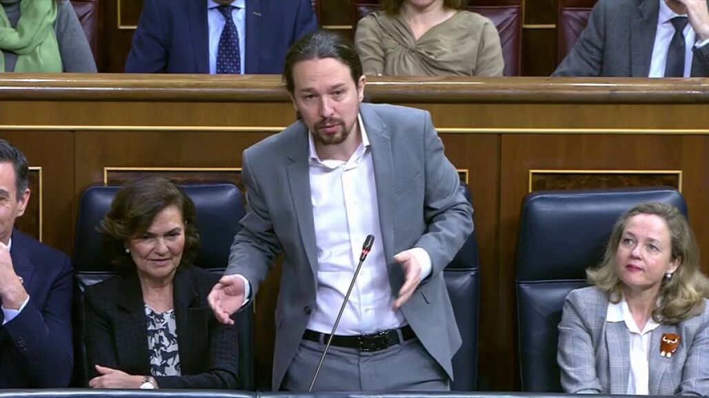 Primera intervención de Pablo Iglesias en el pleno del Congreso como vicepresidente segundo del Gobierno, con una actitud muy moderada, sin entrar a responder a las acusaciones del número dos del PP, Teodoro García Egea.