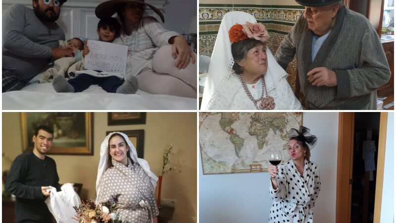 Corbatas, pajaritas, tocados o pamelas se podían ver en las imágenes de los familiares. Tanto los integrantes más jóvenes como los más mayores de la familia participaron en este bonito homenaje a unos novios, que finalmente pudieron celebrar desde casa una boda tan peculiar como emotiva en estos difíciles tiempos del coronavirus.