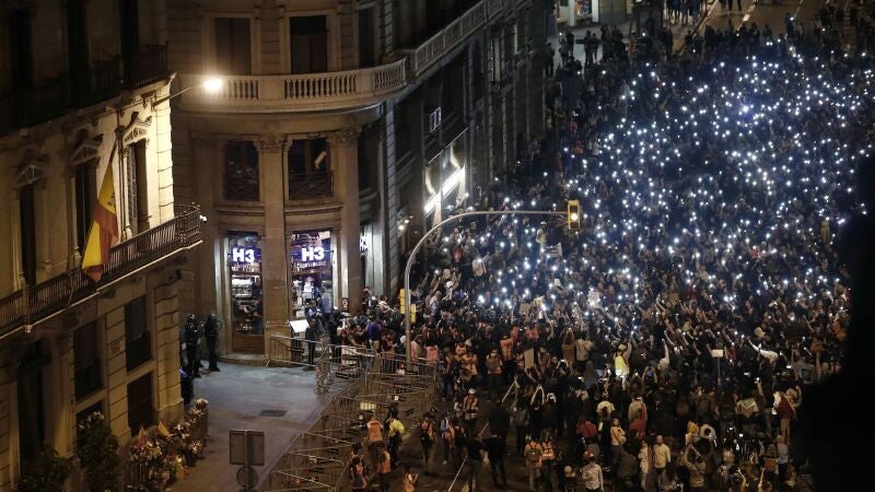 Varios miles de manifestantes independentistas se han concentrado frente a la Jefatura Superior de Policía de Barcelona sin que se hayan registrado incidentes.