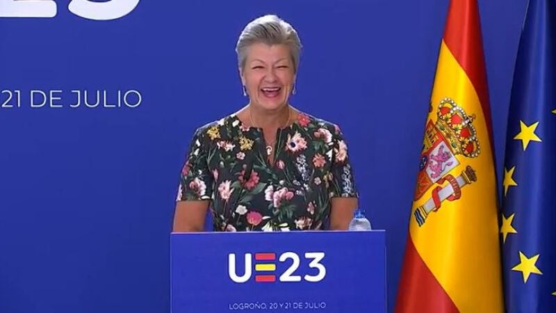 La comisaria de La Unión Europea, Ylva Johansson, se ha encontrado con algunas dificultades a la hora de pronunciar Logroño en su discurso.