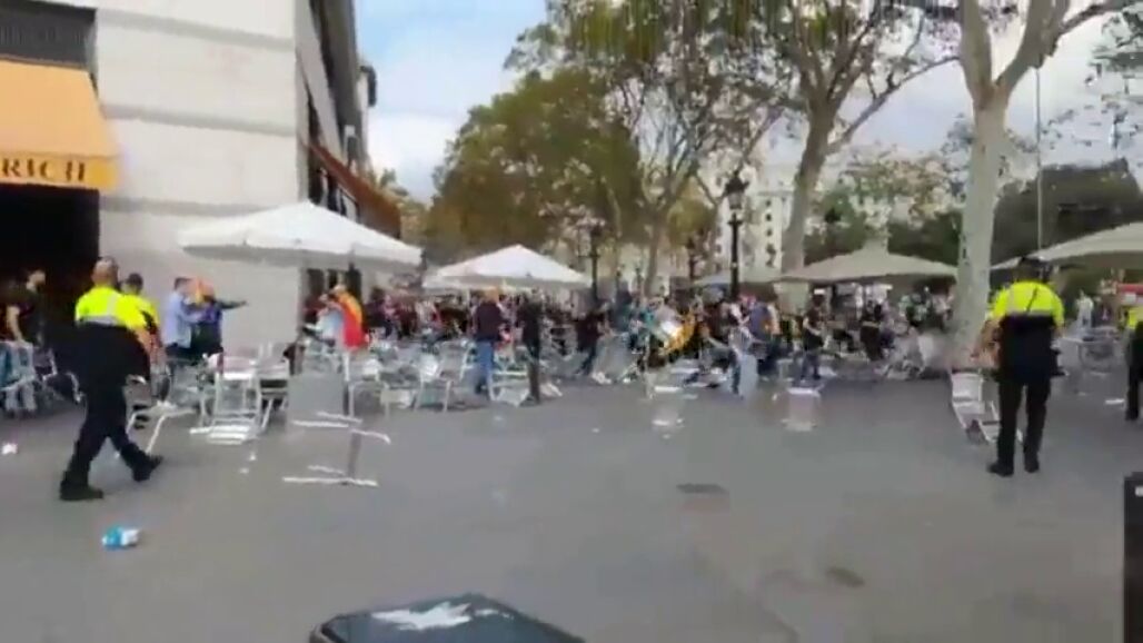 Enfrentamiento entre grupos de ultras radicales en plena plaza de Cataluña de Barcelona