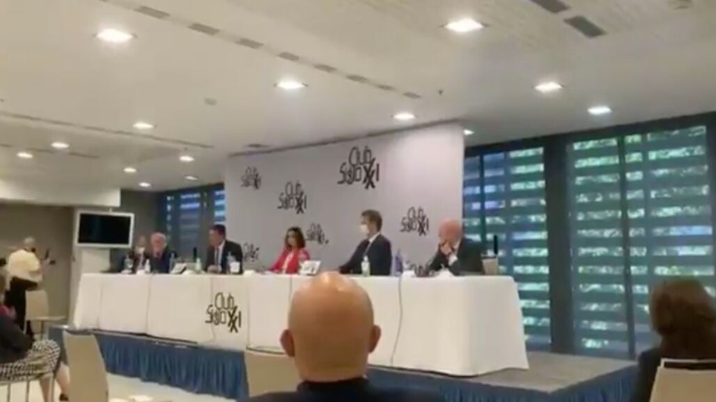 Todo ha sucedido durante un discurso del ministro principal gibraltareño, Fabián Picardo, en Madrid. Las palabras de Picardo se ha visto interrumpidas por gritos de "Gibraltar español", ante el asombro de los asistentes.