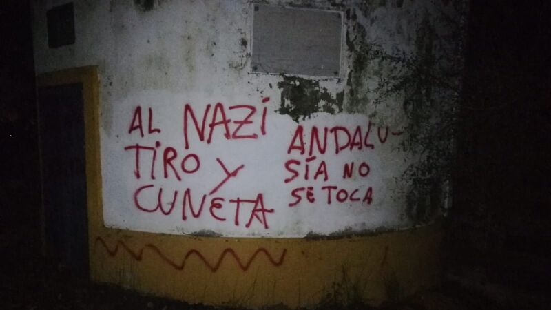 En las pintadas puede leerse 'Morante y Abascal nazis', 'Al nazi tiro y cuneta' o 'Andalusía no se toca'. El líder de Vox ha denunciado en su cuenta de Twitter que "los políticos que propagan alertas violentas contra los resultados electorales democráticos son resposables de estas acciones".