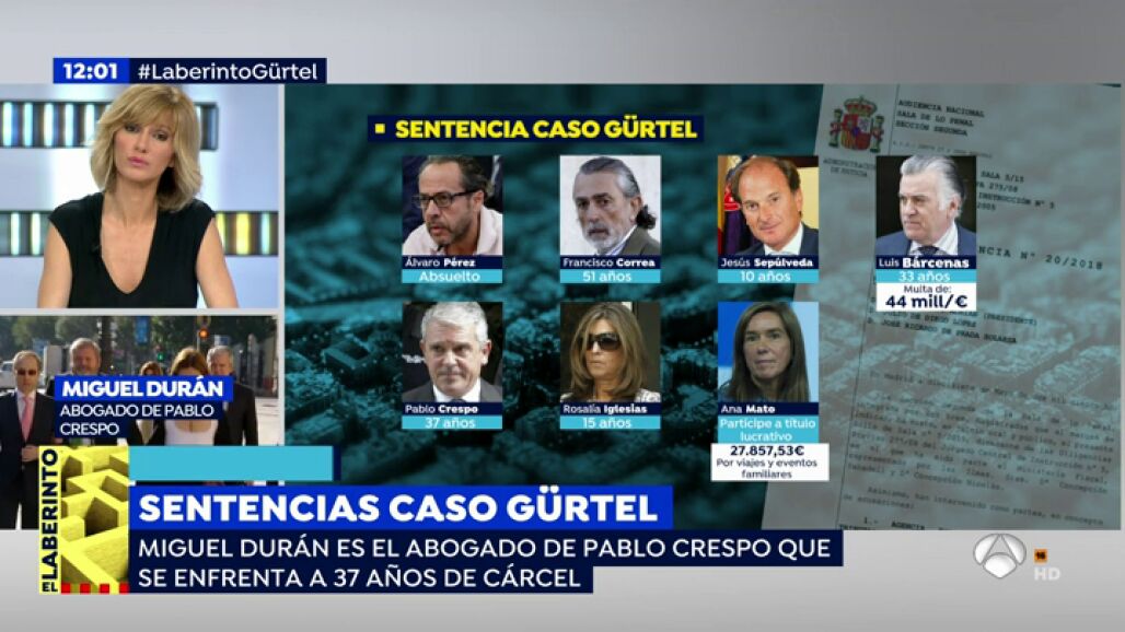 El abogado de Pablo Crespo, Miguel Durán, ha explicado que su representado ha recibido el fallo con normalidad ya que era "una sentencia esperada". Aunque cree que Crespo no cumplirá la sentencia integra ya que "en nuestro país nadie cumple 37 años por esos delitos, ni si quiera 20".