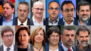 Nueve exconsellers, una expresidenta del Parlament y dos dirigentes de movimientos sociales convertidos en auténtico símbolo del independentismo se sentarán próximamente en el banquillo de los acusados del Supremo en el juicio del 'procés', acusados buena parte de ellos de un delito de rebelión. Estos son los doce acusados, las penas que solicitan para cada uno la Fiscalía y la Abogacía del Estado y el papel que les atribuyen las acusaciones: Oriol Junqueras Fiscalía: 25 años de cárcel por rebelión agravada con malversación. Abogacía: 12 años de cárcel por sedición y malversación Exvicepresidente y responsable de Economía y Hacienda, lleva en prisión provisional desde el 2 de noviembre de 2017. En ausencia de Carles Puigdemont, es la cabeza visible del Govern que impulsó el referéndum y la Declaración Unilateral de Independencia (DUI). Considerado como el principal promotor del 'procés' dentro del Gobierno autonómico, Junqueras fue el responsable último de la preparación y ejecución del 1-O (tarea que coordinó su número dos, Josep María Jové) y, según las acusaciones, decidió ir hasta las últimas consecuencias pese a los riesgos en la seguridad evidenciados por los Mossos. A propuesta de su departamento (bajo el que se ocultaron gastos del referéndum) se aprobaron las normas y las previsiones necesarias para el 1-O. Junto con Puigdemont, envió una carta a todos los alcaldes de Cataluña para que cediesen los centros de votación y dejó de remitir información contable al Ministerio de Hacienda. Carme Forcadell Fiscalía: 17 años por rebelión Abogacía: 10 años por sedición. Primero presidenta de la Asamblea Nacional Catalana (ANC) y después del Parlament, lleva en prisión desde el pasado marzo cuando fue procesada por rebelión. Meses antes, el 9 de noviembre de 2017, pasó una noche en la cárcel y salió tras pagar 150.000 euros de fianza. Como principal representante del poder legislativo en Cataluña, las acusaciones también le adjudican el título de "promotora". Bajo su presidencia, la Mesa del Parlament dio luz verde a la tramitación de las iniciativas que, durante los turbulentos 6 y 7 de septiembre, acabarían convirtiéndose en las denominadas leyes de desconexión del Estado. También permitió la votación -con el rechazo frontal de la oposición- de la DUI y del inicio de un proceso constituyente para la nueva república. Jordi Sànchez y Jordi Cuixart Fiscalía: 17 años por rebelión Abogacía: 8 años por sedición 'Los Jordis' son los acusados que más tiempo llevan en prisión, desde el 16 de octubre de 2017. También se les considera "promotores", en su caso como responsables de la vertiente social del 'procés' en su condición de líderes de ANC y Òmnium Cultural, las asociaciones soberanistas que jugaron un "papel crucial" como instrumento de presión al Estado. Se encargaron, según las acusaciones, de mantener viva "la estrategia de movilización creciente y permanente" y su actuación fue esencial en el acoso a la Conselleria de Economía el 20 de septiembre de 2017, cuando se impidió la actuación de la comisión judicial que estaba registrando el edificio. Una actuación dirigida y consentida por 'Los Jordis', acusados también de alentar a los ciudadanos a ocupar los centros de votación el 1-O para impedir la actuación policial. En el caso de Sánchez, resultó elegido diputado por Junts per Catalunya en diciembre de 2017 y llegó a aspirar a la Presidencia de la Generalitat, pero no pudo acudir al Parlament al estar encarcelado. Renunció el 21 de marzo. Joaquim Forn Fiscalía: 16 años por rebelión agravada con malversación. Abogacía: 11 años y medio por sedición y malversación. Exconseller de Interior y responsable de la política de seguridad desplegada por los Mossos d'Esquadra. Junto con Junqueras, lleva en prisión desde el 2 de noviembre de 2017. Como el exvicepresident, dio orden a los Mossos de seguir adelante con el 1-O pese, según la acusación, a los potenciales riesgos en la seguridad, y alentó a los ciudadanos a acudir en masa a votar. Jordi Turull Fiscalía: 16 años por rebelión agravada con malversación. Abogacía: 11 años y medio por sedición y malversación. Encarcelado también ese 2 de noviembre, quedó en libertad el 4 de diciembre tras pagar una fianza y volvió a prisión en marzo de 2018. Era el responsable de la Conselleria de Presidencia, desde la que se desplegó toda la estrategia de publicidad institucional el 1-O pagada con fondos públicos. Autorizó, junto con otros exconsellers, contrataciones para el referéndum y controlaba el Centro de Telecomunicaciones y Tecnologías de la Información (CTTI), esencial en la logística del 1-O y en el que se crearon páginas web (algunas duplicadas para dificultar la acción policial) y programas informáticos para llevar a cabo el referéndum. Tras las renuncias de Puigdemont y Sánchez a presidir la Generalitat, llegó a someterse a una sesión de investidura que no prosperó. Un día después, el 23 de marzo, volvió a prisión al ser procesado. Josep Rull Fiscalía: 16 años por rebelión agravada con malversación. Abogacía: 11 años y medio por sedición y malversación. Como Turull, pasó en prisión apenas un mes a finales de 2017 y en marzo de 2018 regresó a la cárcel. Además de alentar a los ciudadanos a votar el 1-O pese a ser consciente de que era una convocatoria ilegal y de que había riesgos en la seguridad, prohibió "arbitrariamente" en su condición de conseller de Territorio que un barco en el que viajaba la Policía atracase en la bahía de Palamós (Girona). Raül Romeva Fiscalía: 16 años por rebelión agravada con malversación. Abogacía: 11 y medio por sedición y malversación. Fue exconseller de Relaciones Institucionales y Exteriores y se encuentra en la misma situación procesal que Rull y Turull. Era el encargado de la estrategia exterior del Govern para legitimar internacionalmente el 'proc