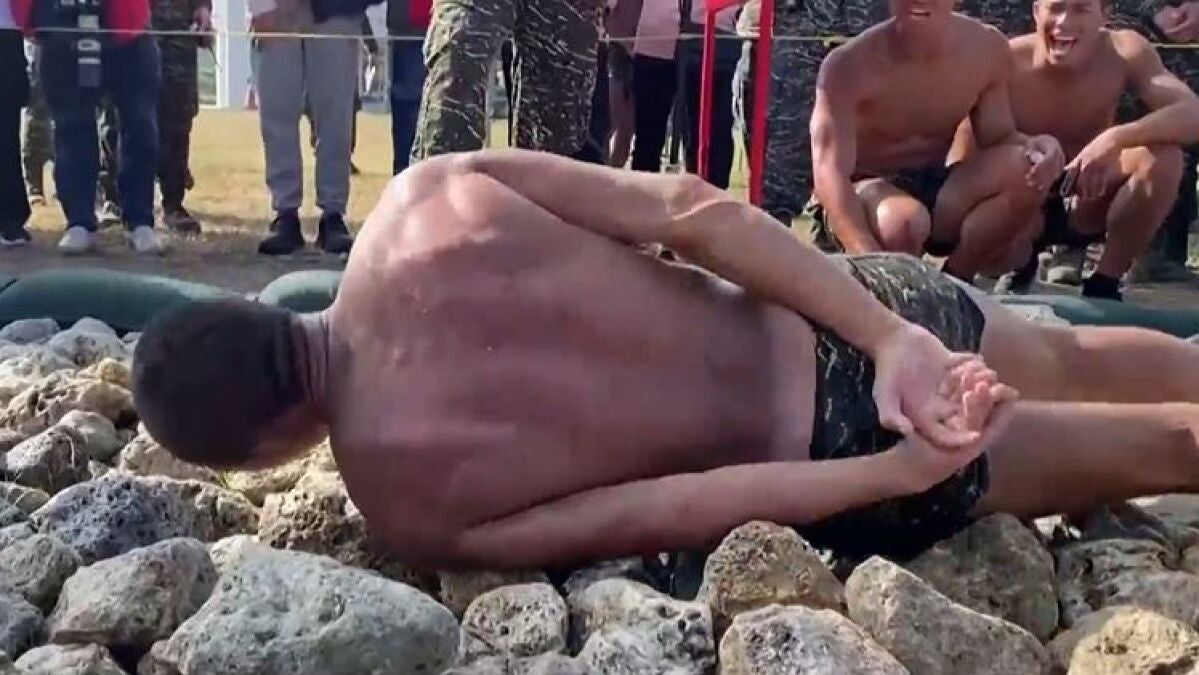 Imagina arrastrarte durante 100 metros sobre rocas cortantes. Este doloroso sacrificio se trata, ni más ni menos, de la última prueba que los militares del ejército de Taiwán tienen que superar para convertirse en marines.