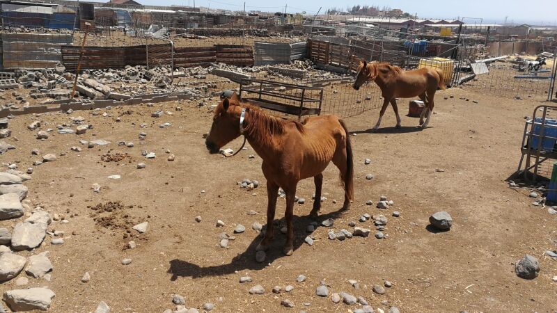 No tenían alimento ni agua, estaban a pleno sol y había varios cadáveres de animales en estado de putrefacción.