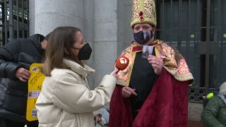 Tras él arribó Juan. Lo hizo el sábado de madrugada, desde León y vestido de obispo. "Vengo vestido para la ocasión con la responsabilidad de traerme el premio para toda la gente de mi tierra", explica a Antena 3 Noticias.