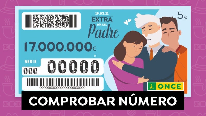 Nota: Los únicos resultados oficiales válidos del Sorteo Extra del Día del Padre de la ONCE son los que hace públicos la Organización Nacional de Ciegos de España (ONCE). Antena 3 no se hace responsable en caso de errores u omisiones en este artículo.
