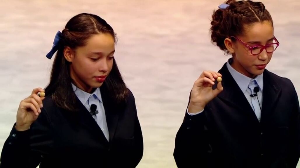 Junto a ellas, Santo Daniel de León y Bileiky Lisselot Arias han extraído las bolas del número y el premio, respectivamente. Las dos pequeñas, visiblemente emocionadas por haber podido dar el premio 'Gordo' se han dirigido enseguida a la mesa de la Presidencia, donde han mostrado las dos pequeña bolas de madera de boj.