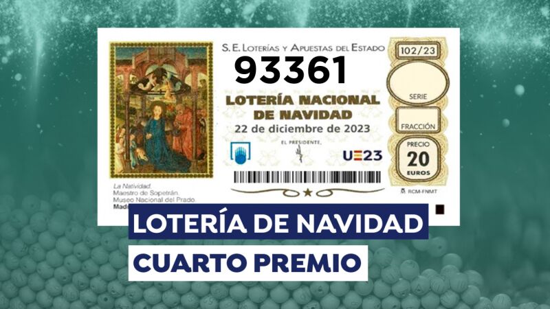 93.361, primer cuarto premio de la Lotería de Navidad 2023