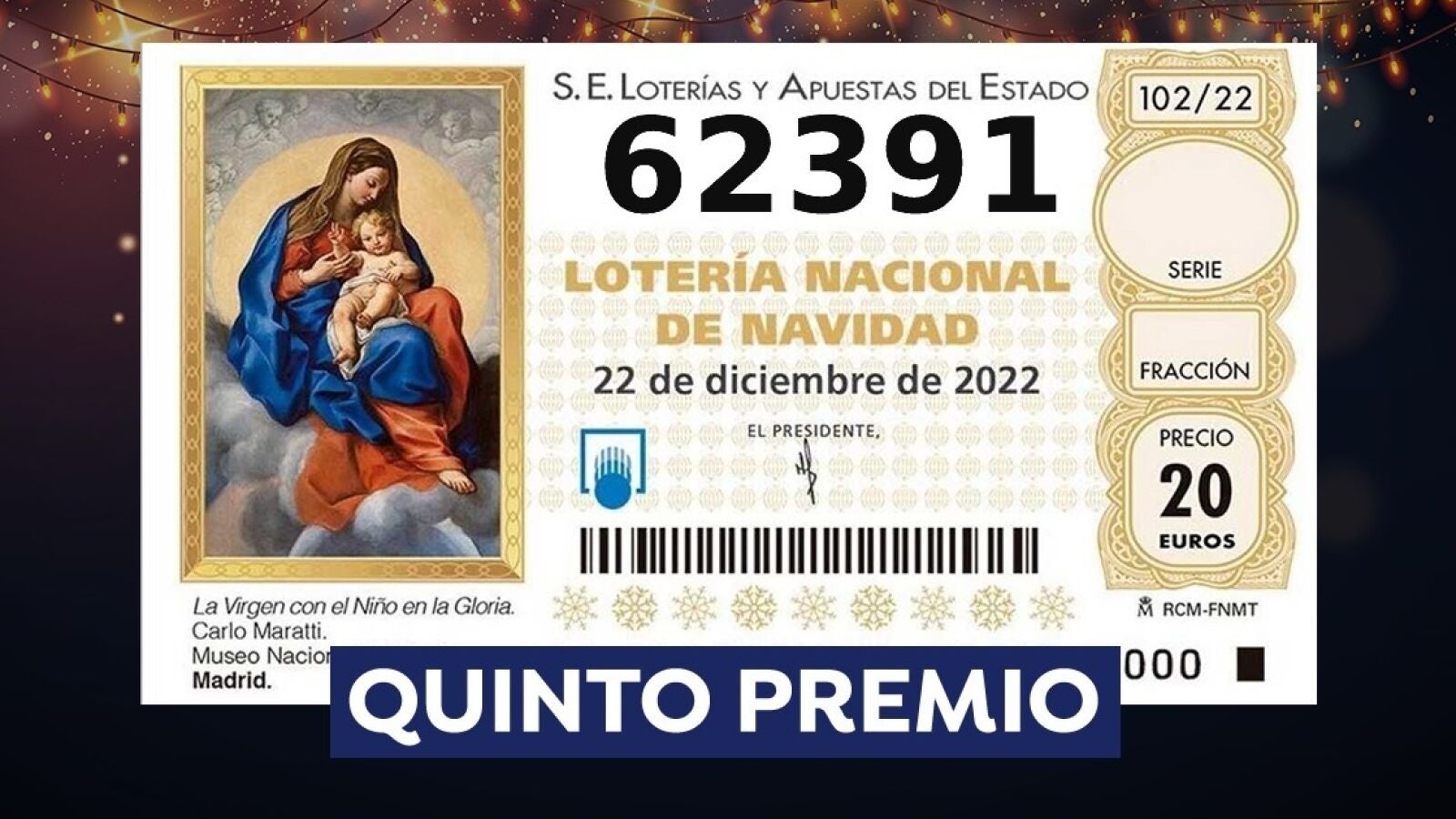 62.391, primer quinto premio de la Lotería de Navidad 2022
