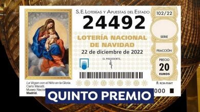 El número 24.492 ha sido agraciado con el quinto quinto premio del Sorteo Extraordinario de Navidad de 2022.