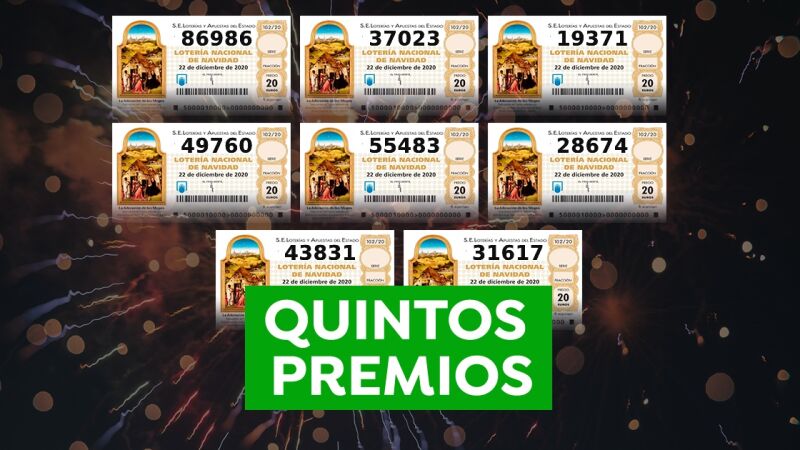 Números premiados con los quintos premios de la Lotería de Navidad 2020