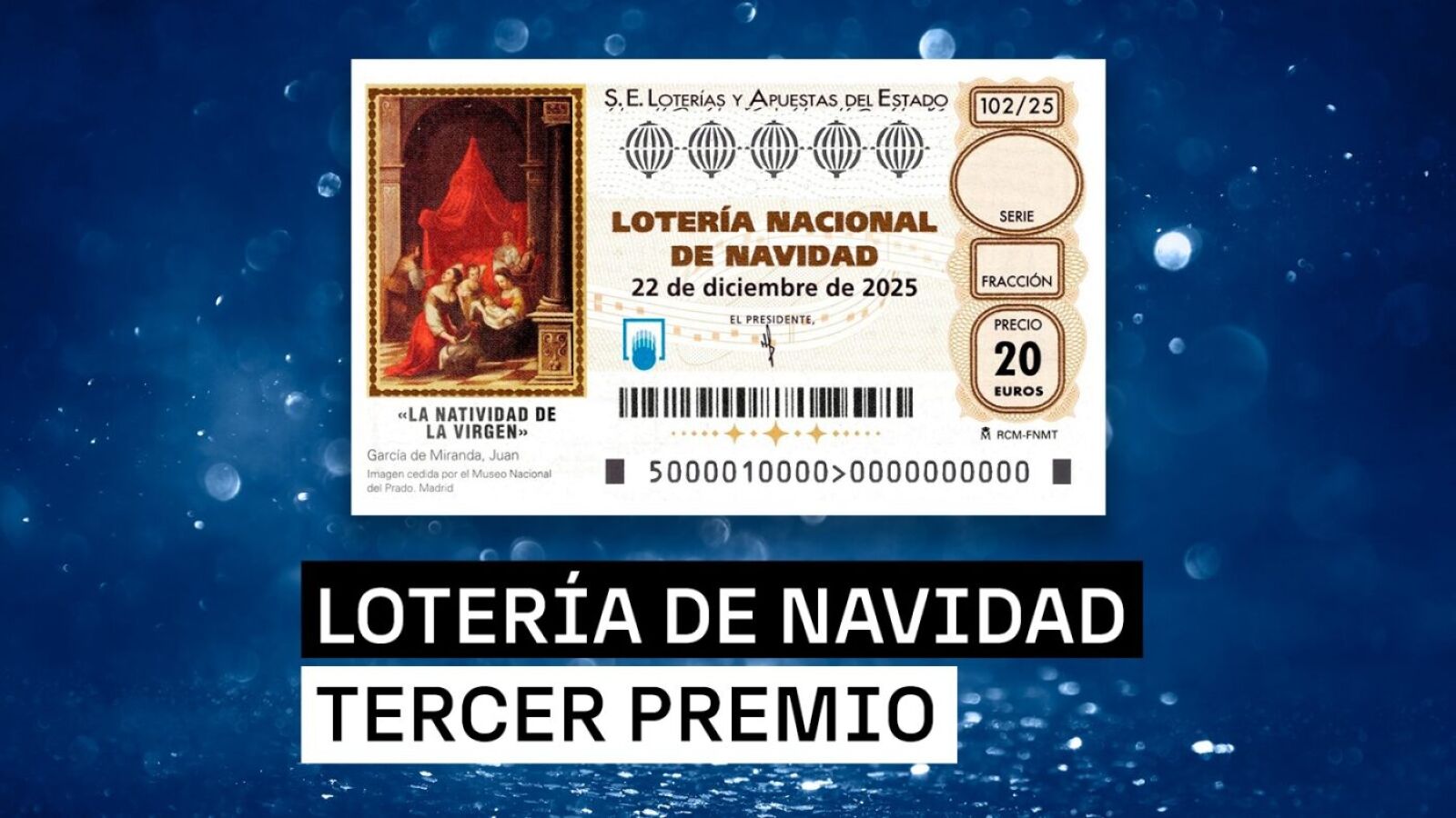 Estamos a la espera de conocer el número premiado con el Tercer premio de la Lotería de Navidad 2025 y el dinero que repartirá este premio a los ganadores.