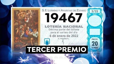 El Tercer Premio de la Lotería del Niño está dotado de 250.000 euros por serie. El número afortunado con este premio es el 19467.