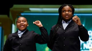 Los niños de San Ildefonso han cantado ya cuatro quintos premios. Los números afortunados han sido el 54.274, 45.353, 88.979, 92.023, 01.568, 86.007, 57.421 y 37038.