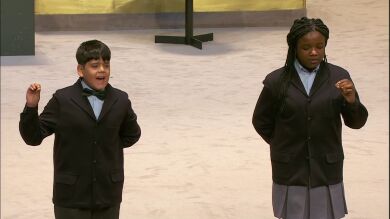 Los niños de San Idelfonso han vuelto este viernes al Teatro Real para repartir ilusión y suerte a los participantes en el sorteo de la Lotería de Navidad.