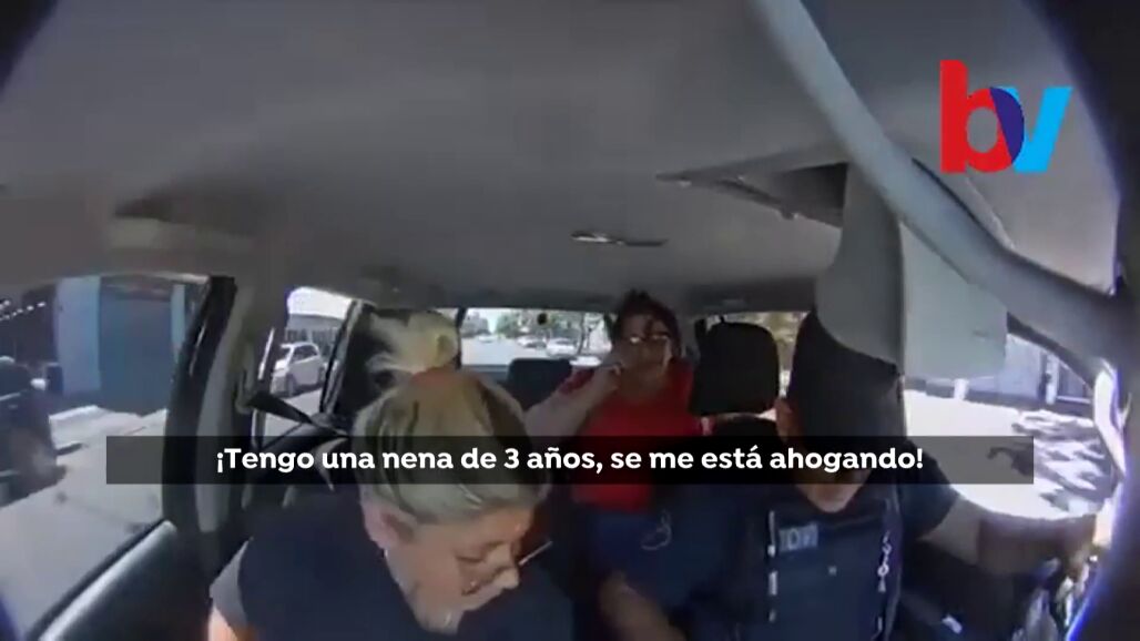 La cámara del coche patrulla graba el dramático momento en el que la policía conduce a toda velocidad al hospital mientras le realizan a la pequeña maniobras de reanimación, la madre, en la parte de atrás, lo observa todo desesperada.