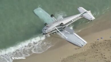 Una avioneta con cuatro pasajeros a bordo se estrella en una playa de Florida. El aparato -que se precipitó por causas desconocidas- quedó boca abajo en la orilla. Sus ocupantes salieron por su propio pie y solo sufrieron heridas leves.