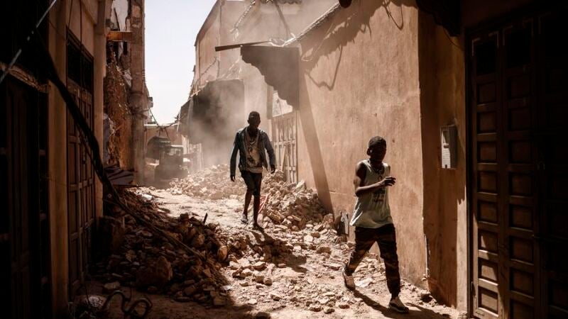 Las angostas calles de la judería de Marrakech están llenas de escombros, y los habitantes se ven obligados a dormir en la calle, incluidos algunos que tienen sus casas en peligro de colapso.