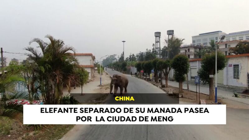 Un elefante salvaje se pierde de su manada y aparece por las calles de la ciudad china de Meng. El animal camina si paradero por las calles hasta que los servicios de rescate logran capturarlo y devolverlo a su manada.