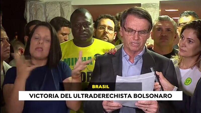 El ultraderechista Jair Bolsonaro, un exmilitar de 63 años nostálgico de la dictadura, ha ganado la segunda vuelta de las presidenciales en Brasil. Con su victoria se pone punto final a los 16 años de triunfos del partido de la izquierda del expresidente Lula da Silva. Su candidato Fernando Haddad ha quedado diez puntos por detrás. Bolsonaro en su primera intervención has prometido defender la democracia y la Constitución brasileña.