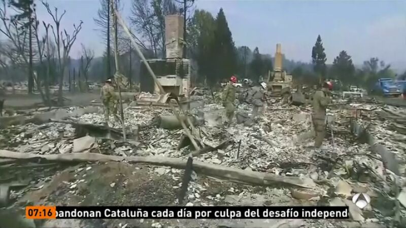 Unas 5.700 infraestructuras han sido destruidas, incluyendo al menos una docena de bodegas de vino de la zona. La sequedad y los fuertes vientos han complicado la tarea de los más de 100.000 efectivos de bomberos que combaten ya un nuevo gran incendio forestal en el condado de Lake. "Desafortunadamente, las condiciones del viento y la topografía están provocando que el fuego sea muy irregular y vaya en varias direcciones diferentes. Los vientos cambian constantemente de dirección en esa área", ha declarado a la cadena de noticias CNN el capitán del Departamento de Protección Forestal y contra Incendios de California Scott McLean.