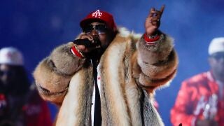 Los raperos Travis Scott y Big Boi también saltaron sobre el escenario. Scott entonó parte de su tema 'Sicko Mode', que ha sido muy censurado en televisión; mientras que Big Boi entró por la puerta grande montado en un coche clásico mientras el público le aclamaba y, luego, se subió al escenario con un abrigo de piel mientras cantaba un segmento de 'I Like The Way You Move'. Todos cantaron sobre un escenario en forma de 'M' gigante que se extendía a lo largo de más de 36 metros en el terreno de juego y que lanzaba cohetes y columnas de fuego. Ninguno de los artistas hizo referencia a la polémica racial que rodea la final del 'Superbowl' y su actuación no tuvo ninguna sorpresa, evitando a la liga de fútbol americano cualquier dolor de cabeza.