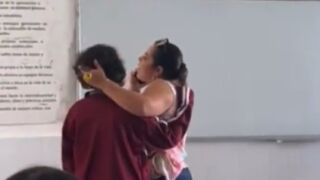 En el vídeo, que dura poco más de un minuto, se ve cómo su compañero se interpone entre ella y la docente para que la discusión no continúe. La maestra graba la situación al igual que otros compañeros de clase. El debate se ha abierto en las redes sociales, ya que la violencia que se da entre ella y su compañero también hace saltar las alarmas.